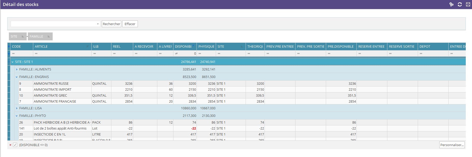 La grille permet un affichage des données très personnalisée dans leur organisation et prend en charge de