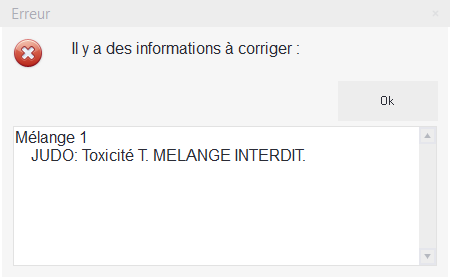La vérification des mélanges est réalisée automatiquement lors de la tentative de validation de la pièce de préconisation.