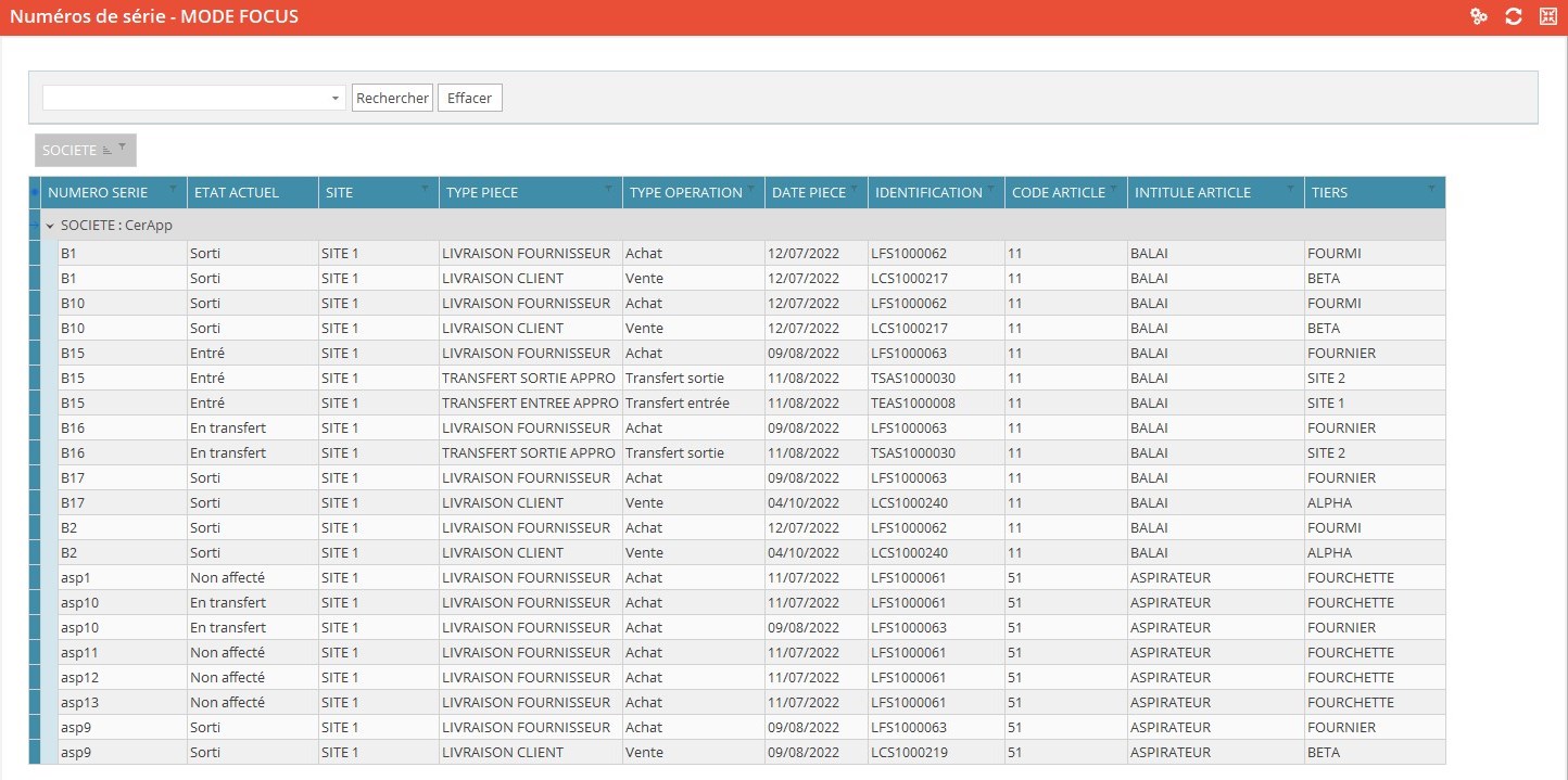 Module APPRO -> Stocks-> Numéros de série