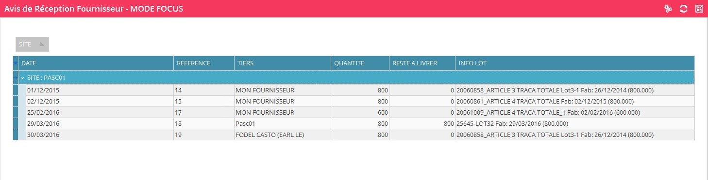 Module ARTICLES -> LOGISTIQUE : Avis de réception fournisseur