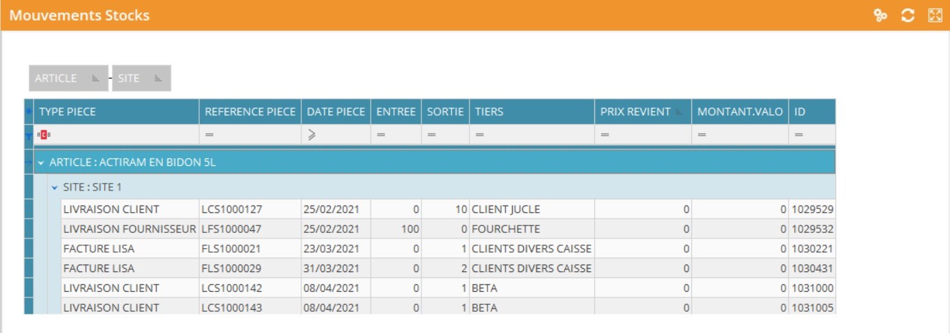 Cliquer sur une ligne de la grille, pour accéder à la pièce dont la référence est mentionnée.