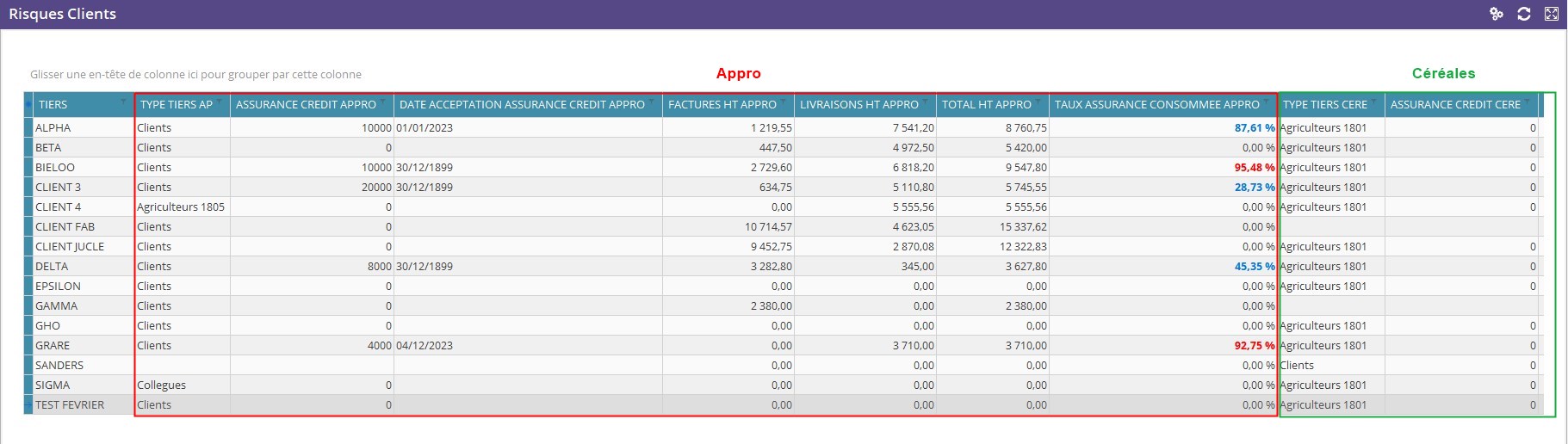 Compare ces positions aux assurances crédits par client afin de suivre le taux d'assurance consommé :