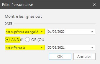 - Attention le filtre sur les deux types de date peut restreindre les pièces proposées. Par exemple, ne pas afficher des contrats de la campagne future mais saisis sur la campagne actuelle. Pour pallier à cela :