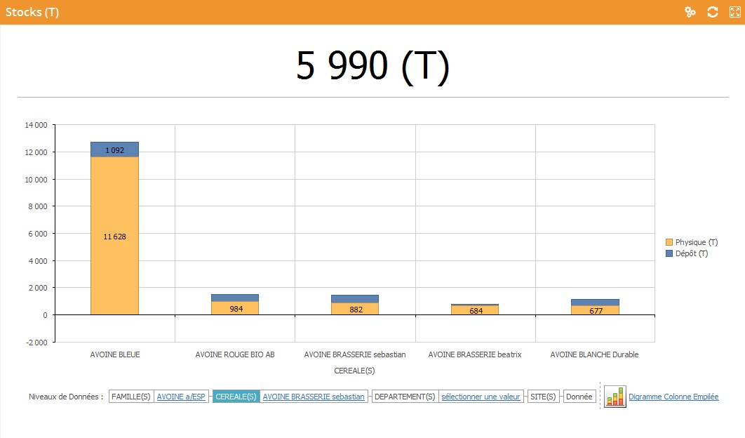 - Le total indiqué en haut du graphique représente la somme des stocks Physique
