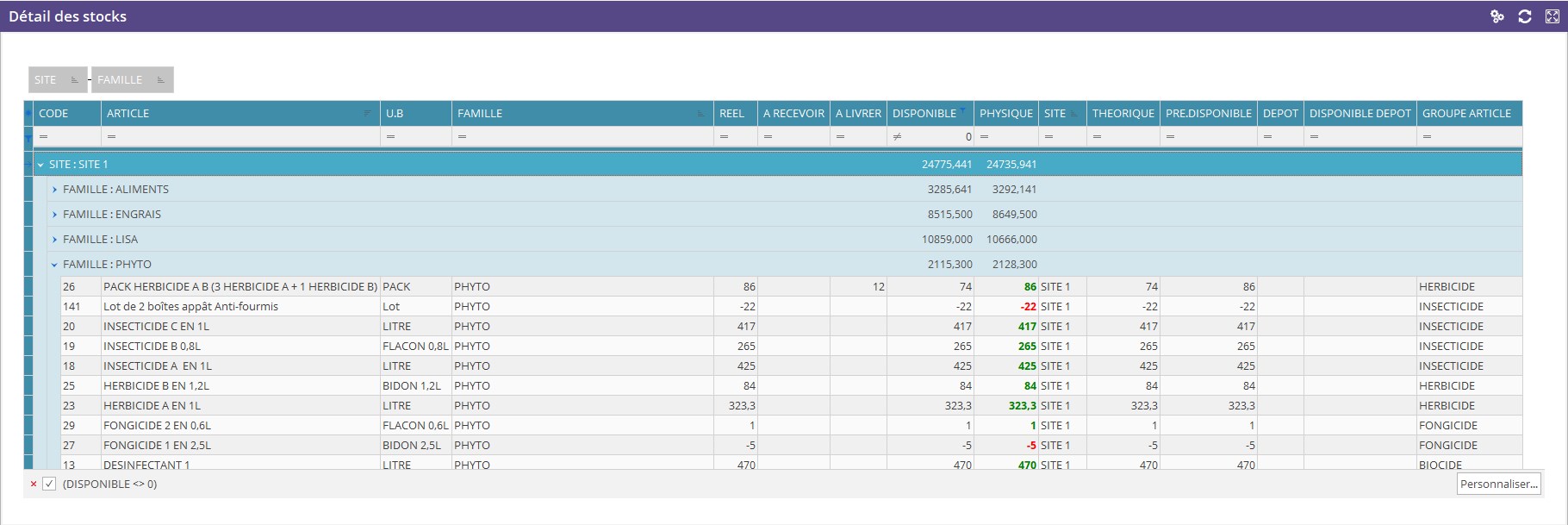 ⇒ il est maintenant possible de sortir un tableau qui permettra par exemple de mettre en valeur les articles ayant du stock et avec le Nbre de Jour restant avant le FIN de COMMERCIALISATION faible et ainsi mieux gérer les stocks.