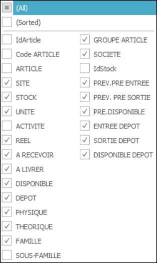 Le widget (type Grille) reprend l'état des stocks, avec les lots, sur les 2 activités et sur le site sur lequel on est positionné.