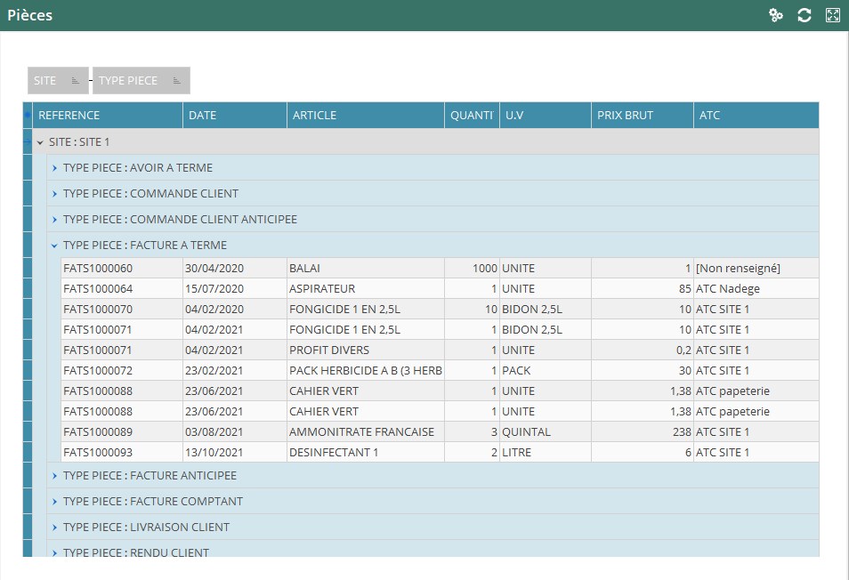 Sur l'entité administrative (à partir de V22.0) - 1 ligne par article (et non par pièce) mouvementés ou non
