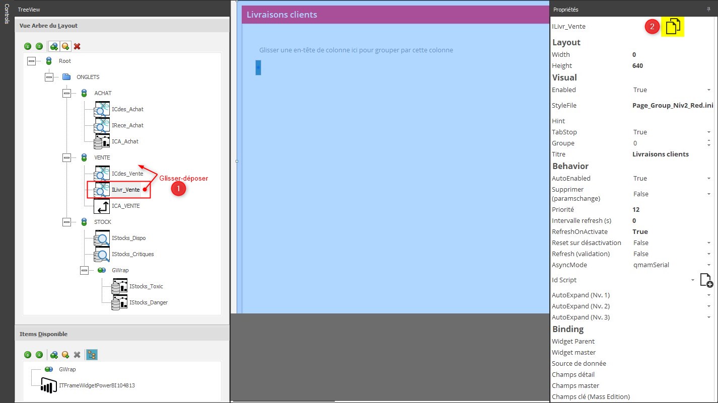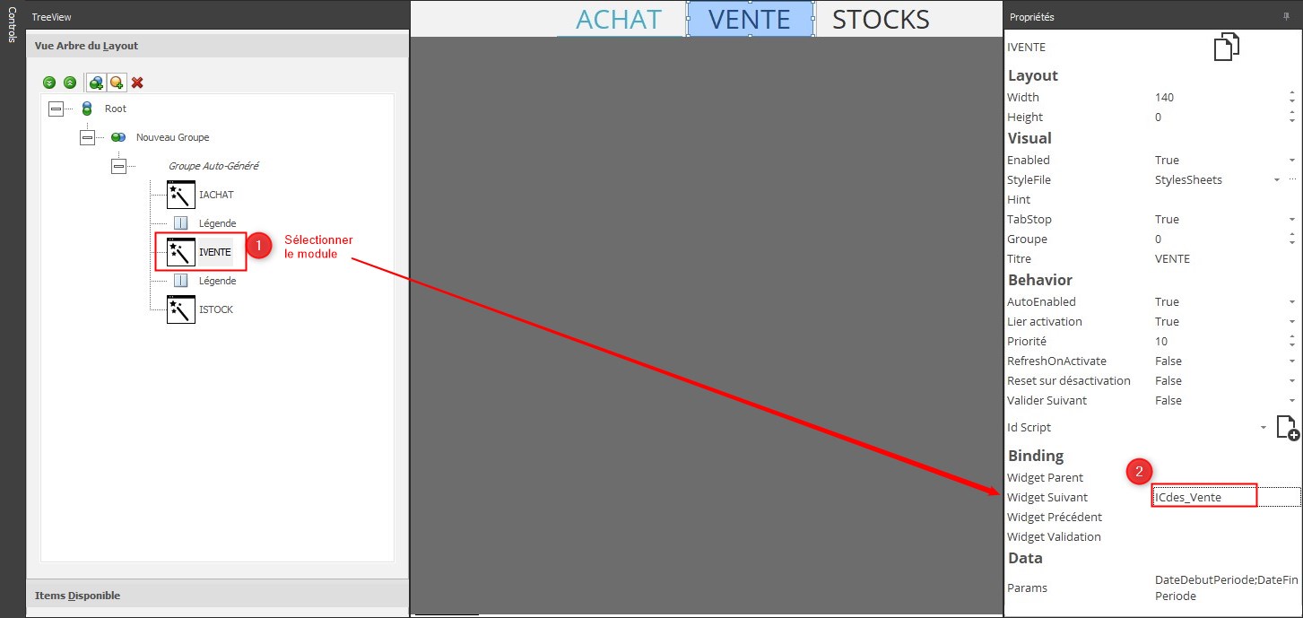 6. Sélectionner le module/onglet concerné puis remplacer le nom du “Widget suivant” par Clic droit / Coller et valider en tapant la touche “Entrée”.