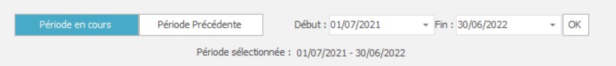 La période ainsi sélectionnée est clairement mentionnée sous les sélections