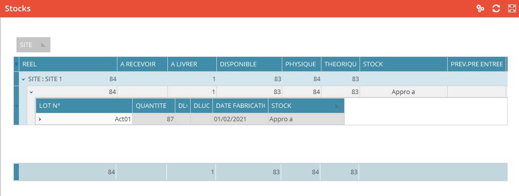 Présente le détail des différents types de Stocks avec information de lot: