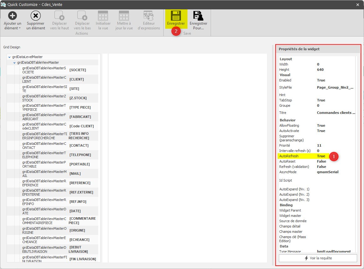 - Mettre le paramètre “AutoRefresh” à “True”